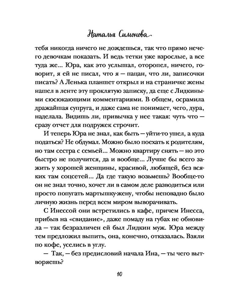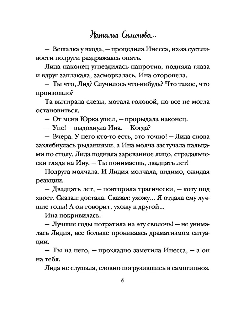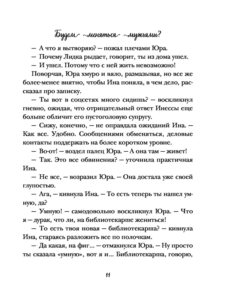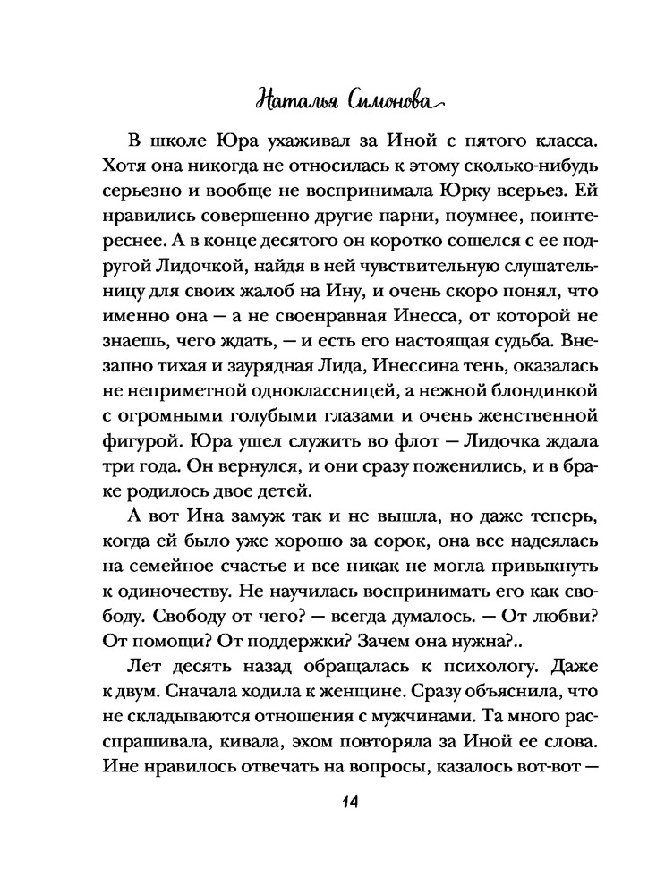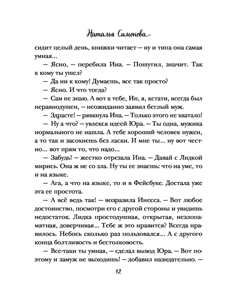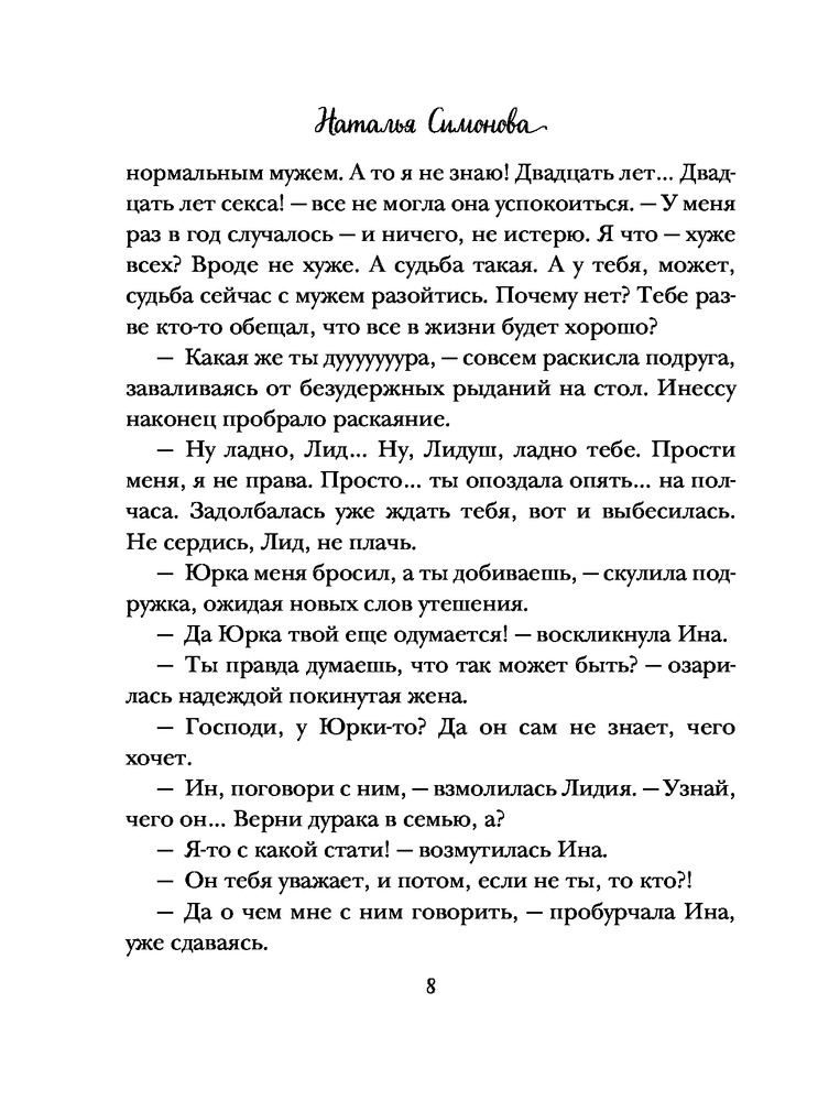 Будем меняться мужьями?В данный момент этот товар отсутствует в продаже. Возможно, у нас найдется аналогичный или похожий товар здесь. Серия: Все еще будет! Супруги Нина и Толик Гельман так давно дружат с четой Яной и Петей Орловыми, что пары срослись намертво — вступили в перекрестную любовную связь. Нина Гельман тайно встречается с Петей Орловым, а Яна Орлова — с Толиком Гельманом. В их отношениях царит гармония, каждый находит в любовном партнере то, чего недостает в законном супруге. Но однажды тайна открывается... Новый сборник Натальи Симоновой — о совершенных и несовершенных ошибках, о горечи потерь, о переосмыслении и выборе, который волен сделать каждый. |