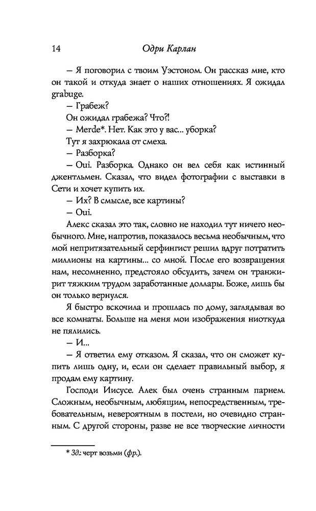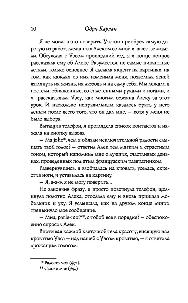 Сталкивались ли вы когда нибудь с девушкой из эскорта? Я нет ! И это, именно те книги, которые помогут лучше понять их мотивы так зарабатывать! Как думаете, много денег можно получить работая в эскорте, да не в простом, а элитном для Vip персон? Думаю нет, тк каждый её заработанный доллар уходит на погашение бешеного долга, в 1 миллион $. Долга, так сказать, по наследству, за неуплату которого отец уже в коме, а следующей становится не хочется! Что же делать молодой красивой девушке, когда все клиенты красавцы и богачи как на подбор? Словно ты в магазине сладостей, можно посмотреть, понюхать попробовать, плюс приятный бонус в размере 20% если дашь попробовать себя) Но самое опасное в этой работе - это ЛЮБОВЬ. Дружба, секс, семья, секс, долг, секс, трагедии, много много секса) Ну и, конечно же, ЛЮБОВЬ куда мы без нее) Однозначно, что история сюжета не нова, но и не заезженный материал про глупышку-простушку влюбившуюся в богача! Нет это не так! История со своим характером и тонким налетом на глубину сюжета. Итог : можно прочесть в ожидании более интересного сюжета, но единожды! Однозначно больше эти книги читать не стану! Сказка про золушку или шлюшку? Каждый решит по своему!