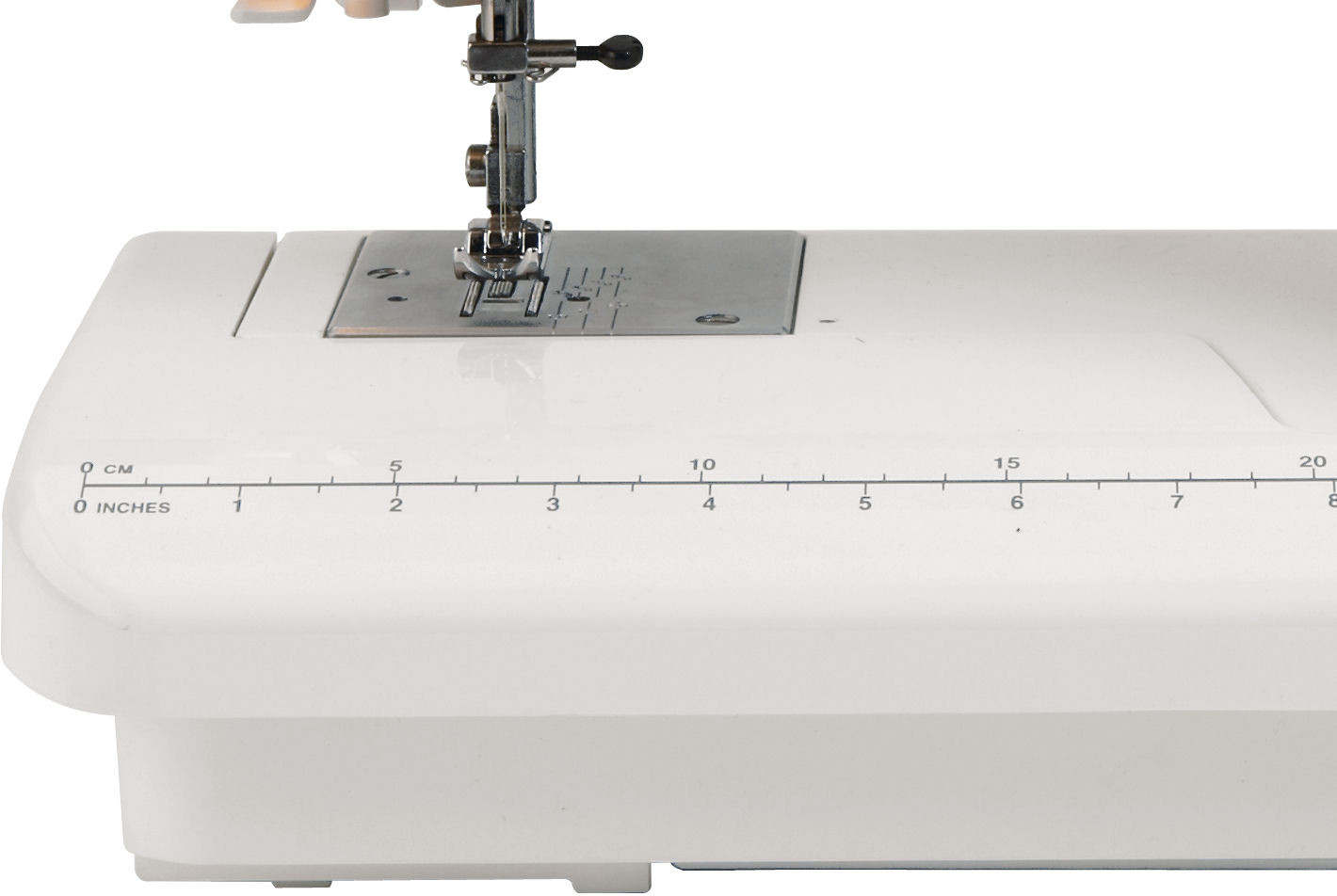 Стандартные принадлежности: универсальная лапка A, лапка для вшивания молнии односторонняя, лапка подрубатель на 2 мм D, рамка для полуавтоматической петли R, направитель для потайного шва, шпульки пластиковые 4 шт. (3 шт. и 1 в машине), набор игл 5 шт., вспарыватель, отвертка-ключ, масленка с маслом, жесткий чехол.