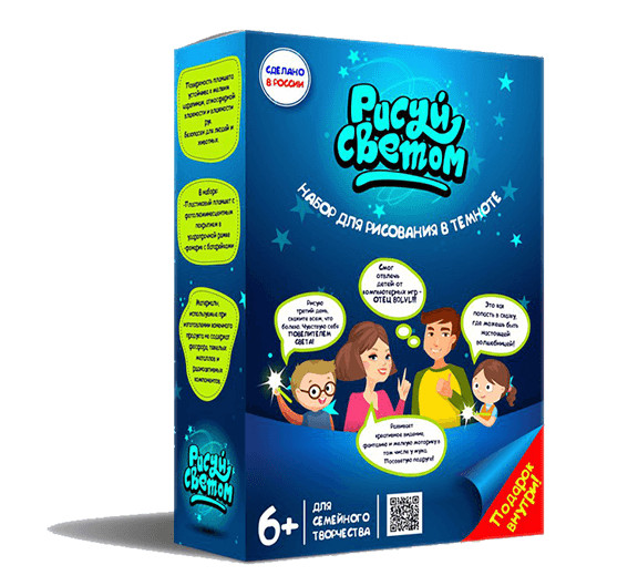 Комплект: планшет, световой маркер, инструкция, коробка, трафареты.