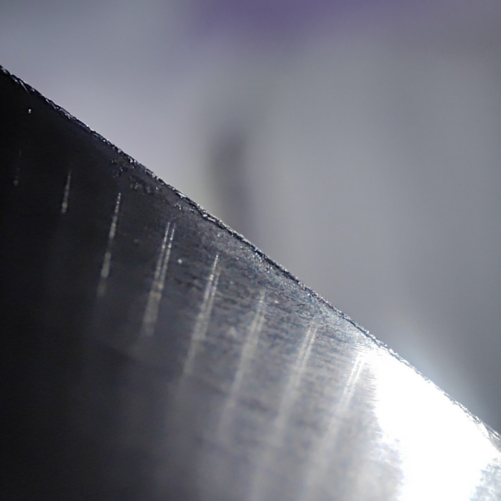 Нож прибывает в простом пакетике от флипа. Рукоятка очень удобная, на ощупь, как твердая резина, не скользит даже во влажных руках. Заточка с завода очень хорошая. По поводу указанной твёрдости. При резке чеснока на деревянной доске, появились небольшие замятия на режущей кромке. Легко убрались одним движением мусата, даже без надавливания.