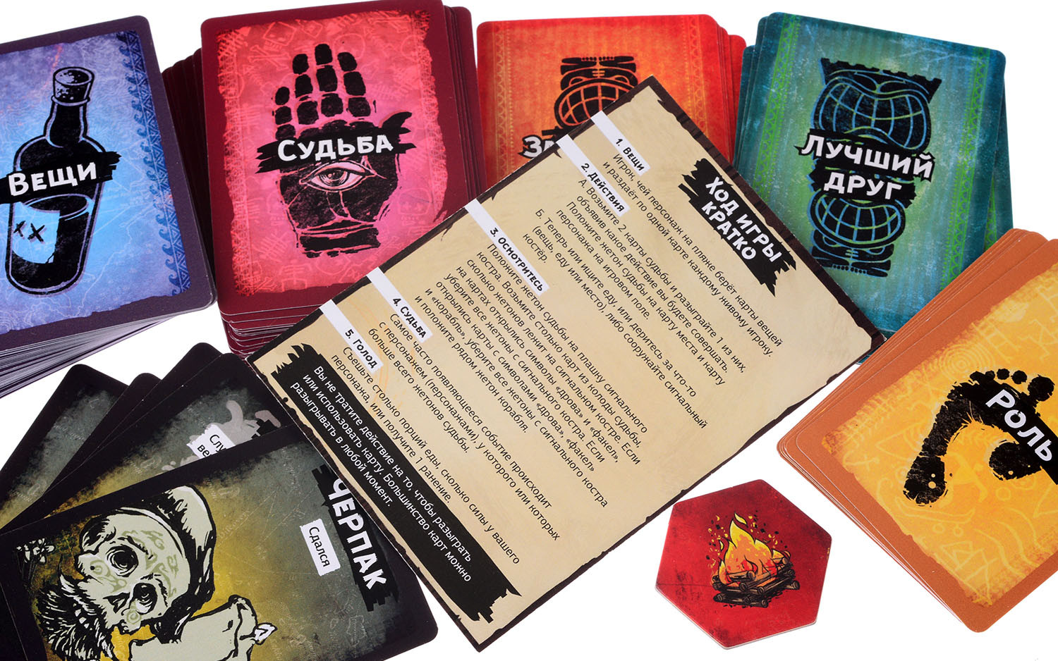 Игрой доволен, коробка удобная, просторная, есть 2 ниши для колоды. Все элементы выполнены качественно, фишки прорублены хорошо, извлекаются без усилий. Сами карты: обычный картон, матовый, хотя в тех же "за бортом" они выполнены намного качественнее и более устойчивы к стиранию. Обязательно найдите в интернете исправленные правила, там устранены некоторые неточности и исправлен баланс. Еще, было бы совсем огонь, если бы была возможность тут сразу заказать протекторы к картам. Спасибо!
