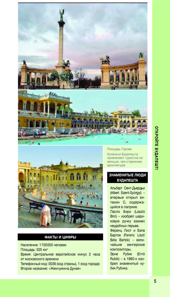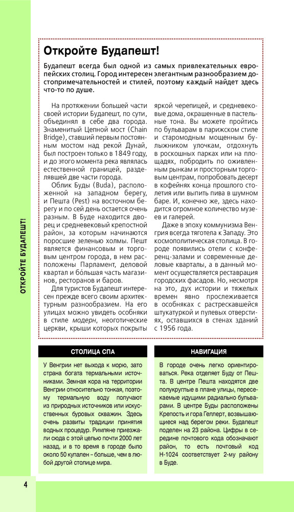 Перед вами обновленный экспресс-гид по Будапешту. В нем содержится краткая информация о столице Венгрии, советы, как лучше провести первый и второй дни, и 25 главных достопримечательностей. Яркие фотографии, интересные факты и много полезной информации. Легкий, компактный, очень удобно брать с собой. Карта города, подробные карты для прогулок и карта транспорта прилагаются! 5-е издание, исправленное и дополненное.