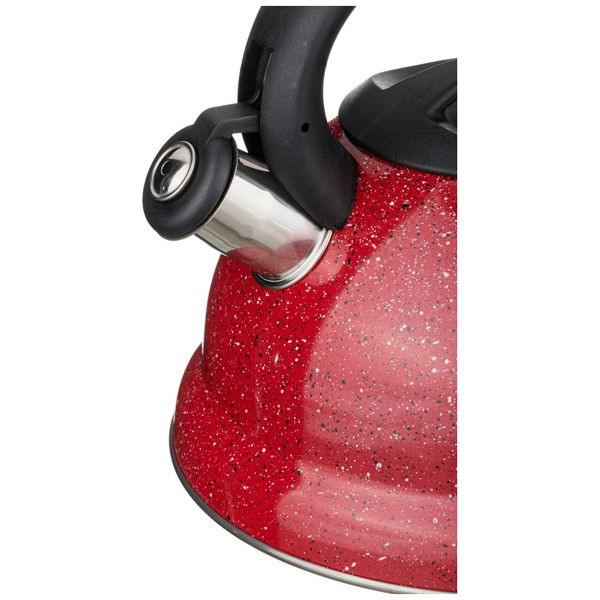 Agness Чайник со свистком (3 л)В данный момент этот товар отсутствует в продаже. Возможно, у нас найдется аналогичный или похожий товар здесь. Чайник оборудован свистком для определения закипания воды и изготовлен из высококачественной нержавеющей стали. Корпус из данного материала долговечен, не подвергается коррозии и обладает антиаллергенными свойствами. Ручка модели фиксированная и имеет эргономичную форму, за счет чего удобно ложится в ладонь. На ней находится механизм открытия носика-свистка. |