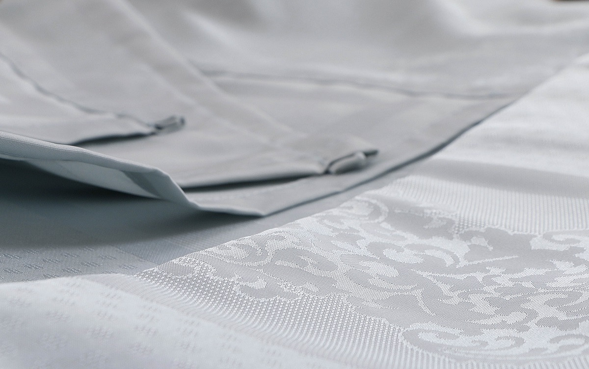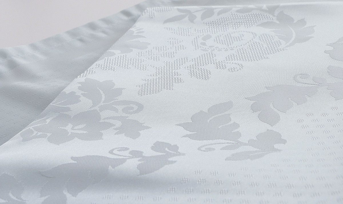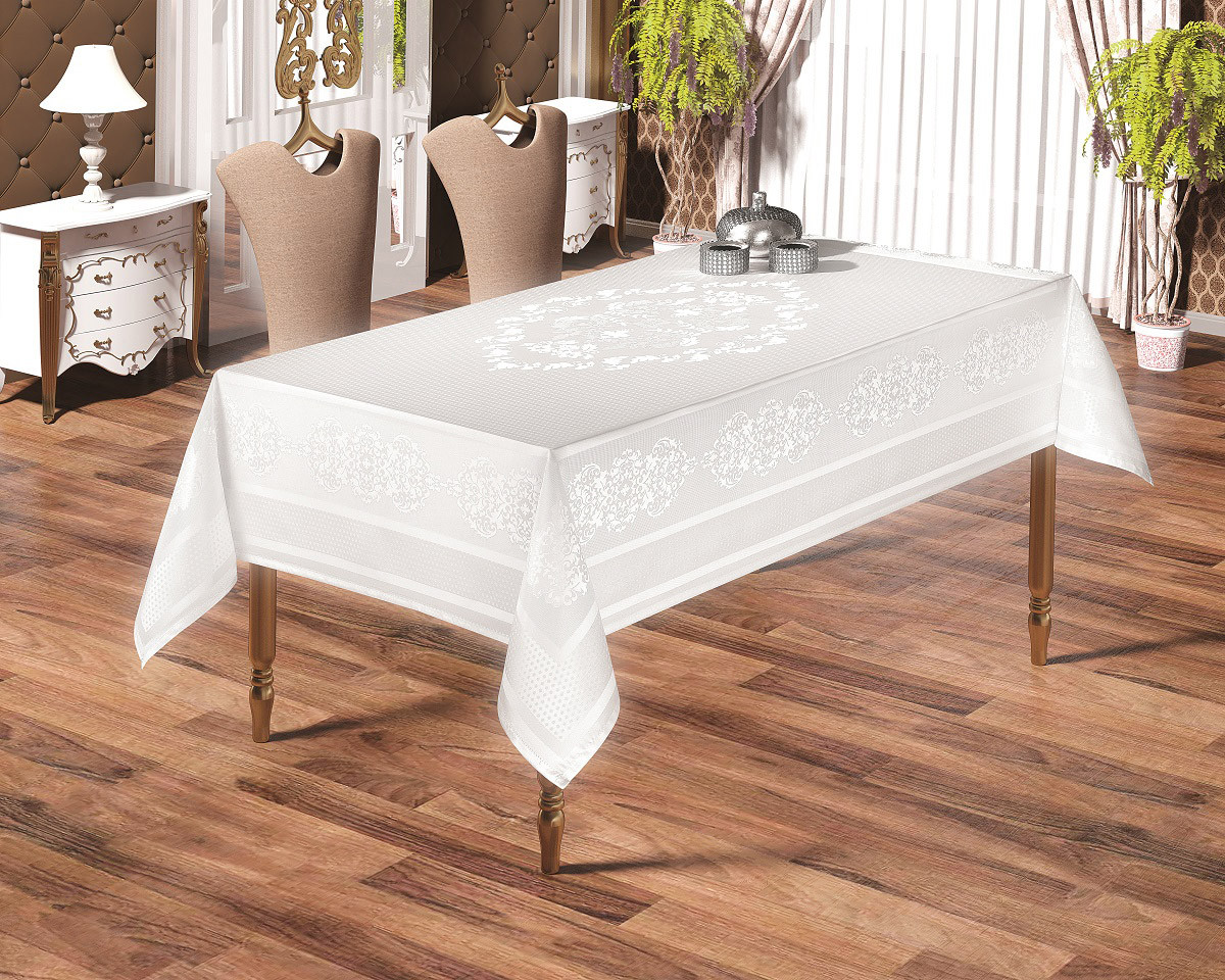 Изделия (в том числе и скатерти) из полиэстера стирают при низкой температуре (не выше 40°С), специальная отделка упрощает уход за изделиями. С такими свойствами ткани очень легко сохранить белизну скатерти.
