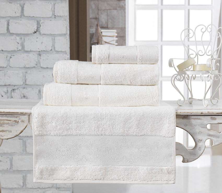 Полотенце бамбуковое PANDORA изготавливают из экологически чистого материала, а именно из бамбуковой махры. Бамбуковая махра делается из бамбуковых волокон. Бамбуковые волокна, имеют дышащую структуру, и обладают отличными свойствами впитывать влагу приблизительно на 60% больше, чем хлопок. Несмотря на то что волокна отлично впитывают влагу они быстро высыхают. Волокна бамбука могут поглощать и предотвращать размножение различных бактерий. В волокнах присутствует большое количество медного купороса, и в основном из-за этого полотенце не впитывает неприятные запахи. Так же полотенца не образуют статического электричества и легко стираются. Бамбуковая махра считается экологичным материалом и при своей пористой структуре она приятна на ощупь. Ещё одним плюсом является то что бамбуковая махра обладает гипоаллергенными материалом. Так как полотенца из бамбука не аллергенны их рекомендуют использовать для детей, и особенно детей грудного возраста. Отличительной особенностью данной модели является её оригинальный жаккардовый рисунок. Такие изделия имеют рельефный рисунок и отличаются повышенной прочностью, устойчивостью к частой стирке.
