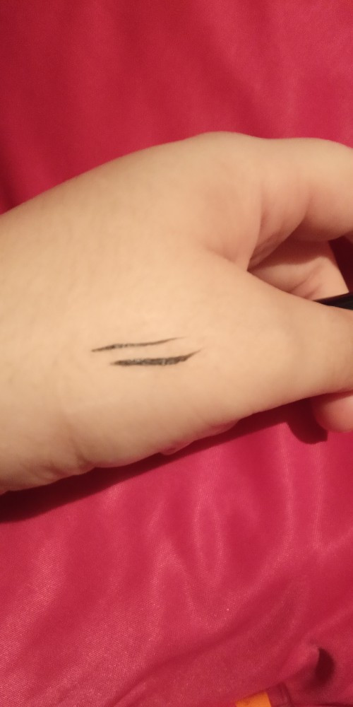 Подводка в принципе не плохая, цвет насыщенный, но я уронила ее на кафель и сразу же отвалилось дно. Пришлось выкинуть. Очень некачественная упаковка, как оказалось. Ну и кисть очень тонко рисует линию, вроде и плюс, но и закрасить стрелку проблематично.