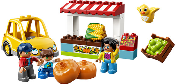 LEGO (ЛЕГО) Конструктор «Фермерский рынок»В данный момент этот товар отсутствует в продаже. Возможно, у нас найдется аналогичный или похожий товар здесь. Серия: LEGO Duplo Из деталей конструктора собирается белый киоск с полосатой крышей, в котором выставлена на продажу сельскохозяйственная продукция - аппетитные зеленые яблоки и большие початки кукурузы. Овощи и фрукты устанавливаются на полку с помощью специальных креплений. Огромные тыквы на прилавок не помещаются, потому они разложены прямо на газоне. Расчет с покупателями производится с помощью кассового аппарата. |