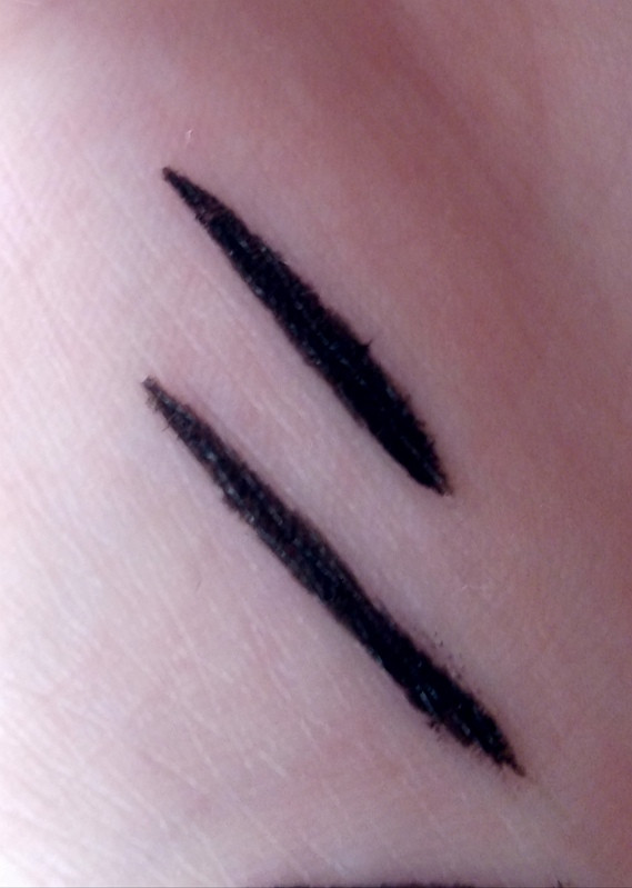 Подводка ложится мягко, цвет насыщенный черный, но как показала практика использования - подводка не стойкая, размазывается.