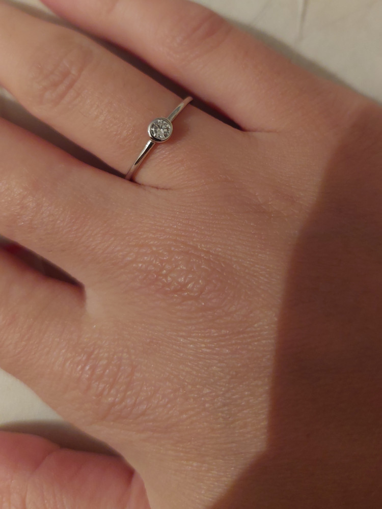 Очень нежное колечко. Купила 15 размер. Камушек поблескивает. Тонкая оправа. На повседневную носку идеально.