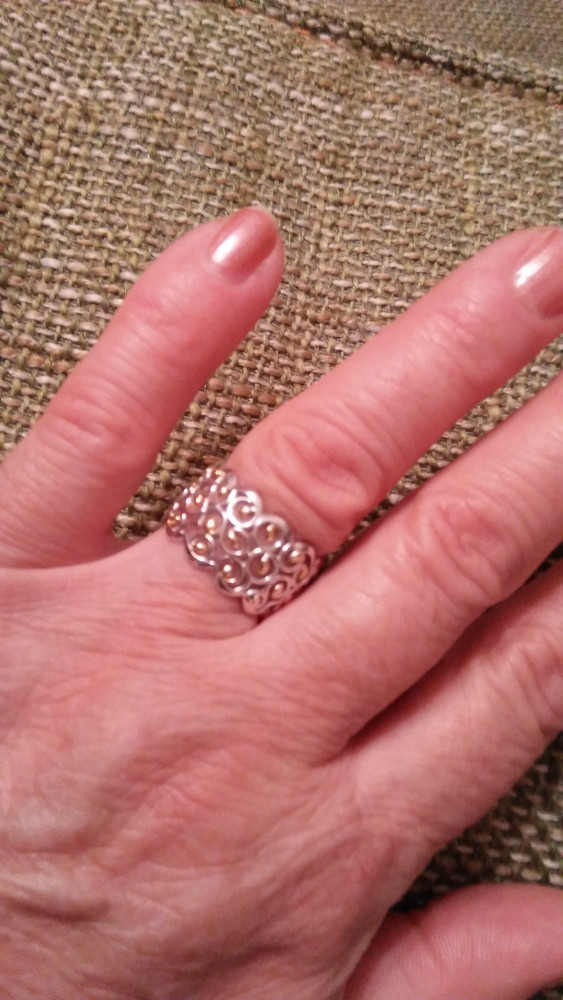 Кольцо очень красивое, ажурное, довольно широкое. Мне нравится, ношу с удовольствием и кольцо, и кулон.