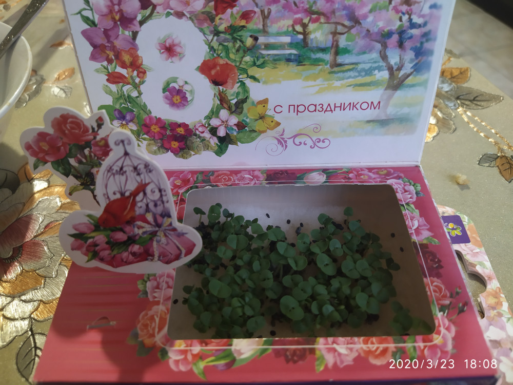 Очень понравилась открытка, девочки просто в восторге, всё семена взошли. Красота!