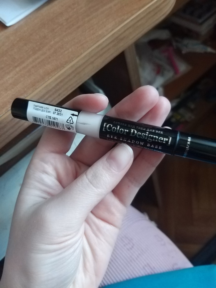Хорошая база, наносится легко. Особенно нравится, что продукт в "карандаше", покрутил-выдавил нужное количество базы, нанес на веко, снял излишки с кончика аппликатора, закрыл. Все чисто, не портится и не сохнет. До этого у меня была база Bell в баночке, неудобно, пальцем лезть - не гигиенично, кисточкой - расход большой. И сохнет быстро. А тут - красота. Рекомендую!