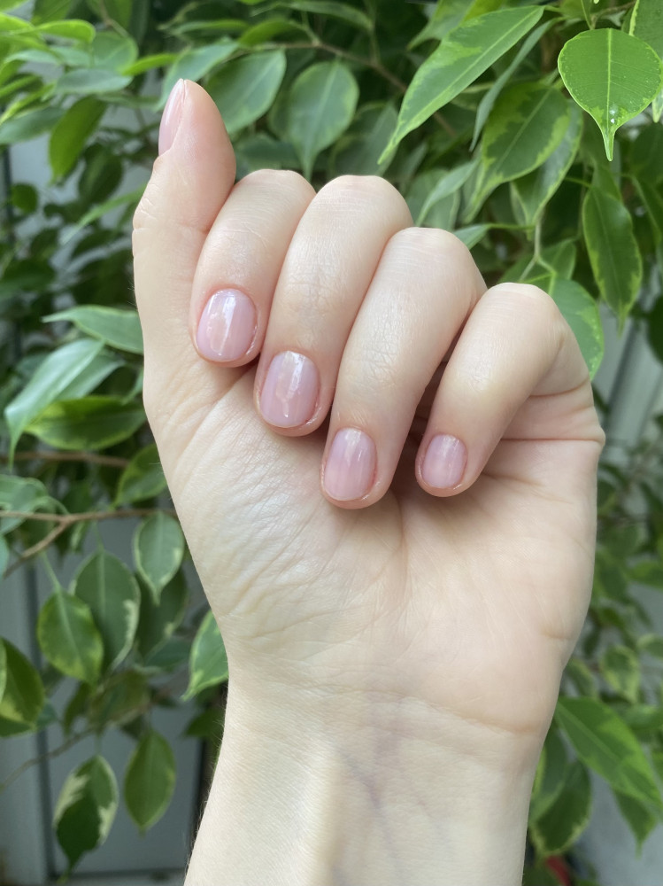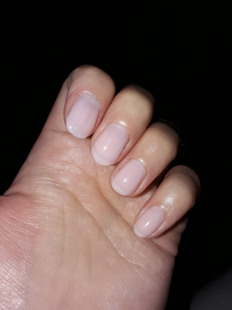 Хороший укрепитель, брала по совету RedAutumn :) В реальности цвет слегка розоватый. Если нанести несколько слоев можно добиться такого эффекта:
