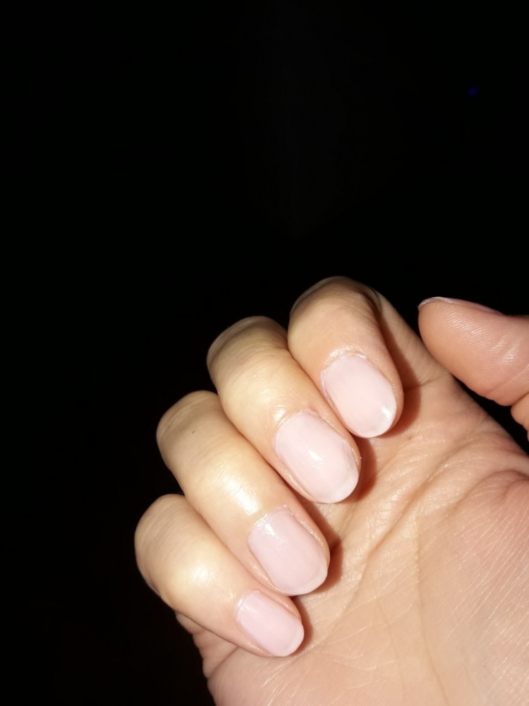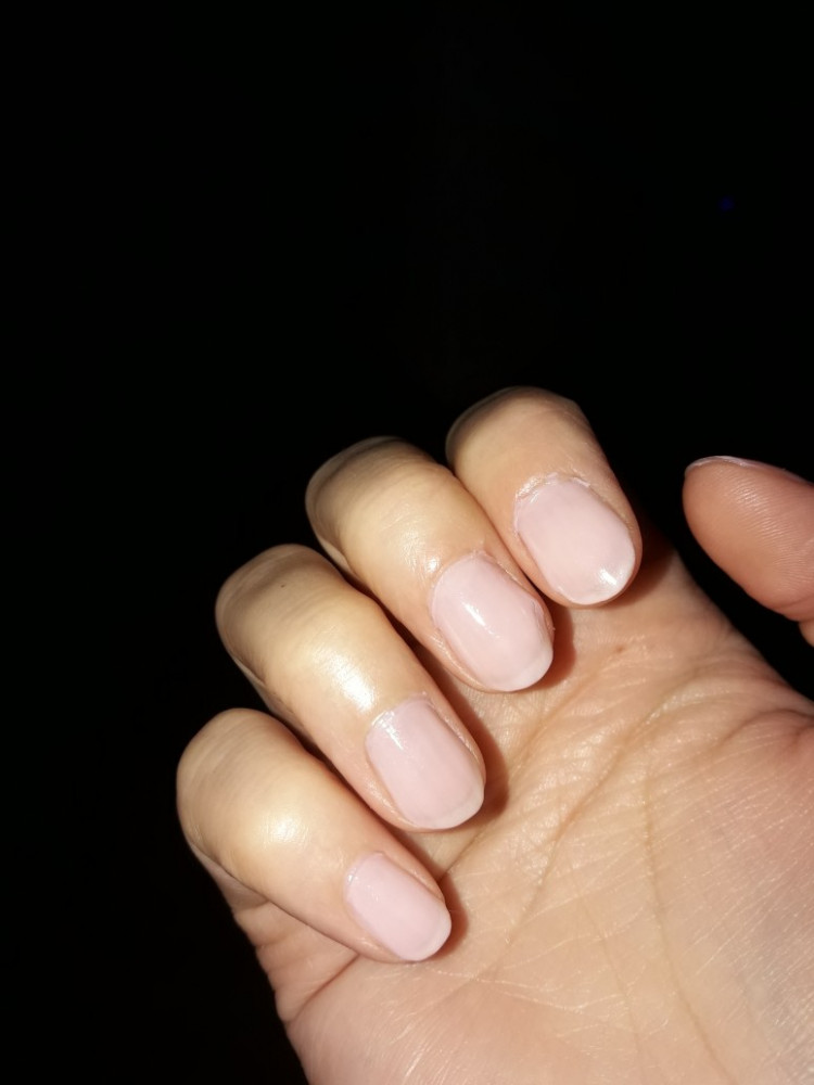 Наносила этот лак в салоне и понравился, держится неплохо и цвет не яркий. Аккуратно смотрится, для коротких ногтей, как мои вполне подходит. Эффект такой, как будто маникюр без маникюра. Аккуратный маникюр, не броский и укрепляет ногти видимо, применяю вместе с покрытием: Укрепитель 3 в 1. Держится всю неделю, если не больше. Смотрится естественно, не утяжеляет. Ногтевая пластина действительно становится немного плотнее. Есть желание, в будущем приобрести этот лак снова.