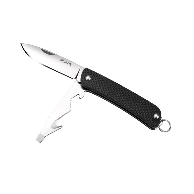 Ruike S21 – пожалуй, один из наиболее компактных ножей туристического назначения. Его длина в сложенном виде составляет 71 мм, а на клинок приходится 53 мм. Тем не менее, все рабочие качества данной модели строго выверены, чтобы нож служил действительно удобным и практичным инструментов. Его стоит взять с собою в кемпинг, на рыбалку, в обычную загородную поездку с пикником.