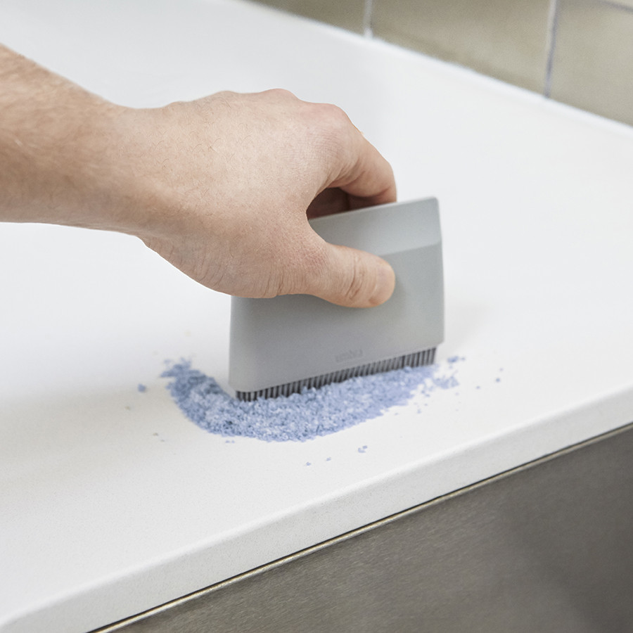 Маленькая, но очень полезная вещица! Благодаря этой щетке - пара секунд и столешница в ванной всегда в идеальном состоянии. Вещь действительно дизайнерская, поэтому можно хранить на видном месте.