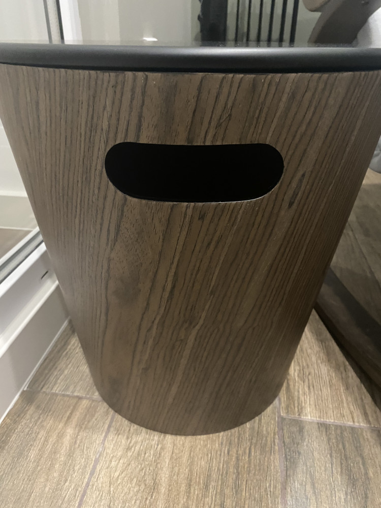 Очень довольна покупкой, сделан из дерева, сверху закрывается чёрной матовой крышкой, а внутри можно хранить одеяло или книги. Можно использовать как журнальный столик или табурет. Цена соответствует качеству, рекомендую к покупке!