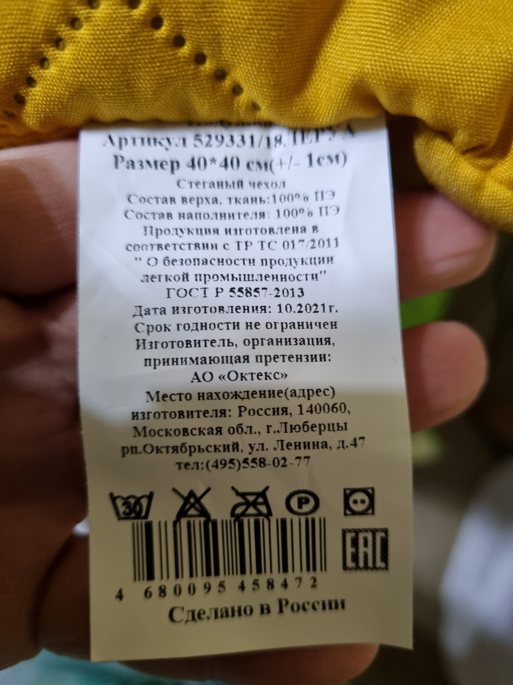 Товар хороший, но не соответствует картинке. Подушку прислали другого размера не 45×45, а 40×40 и не Мрамар, а горчичную и другого производителя.