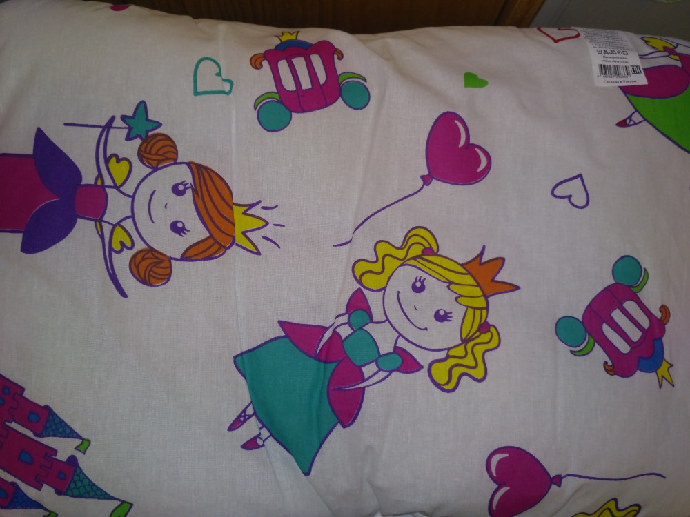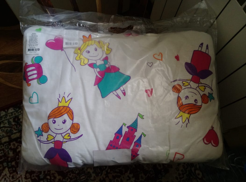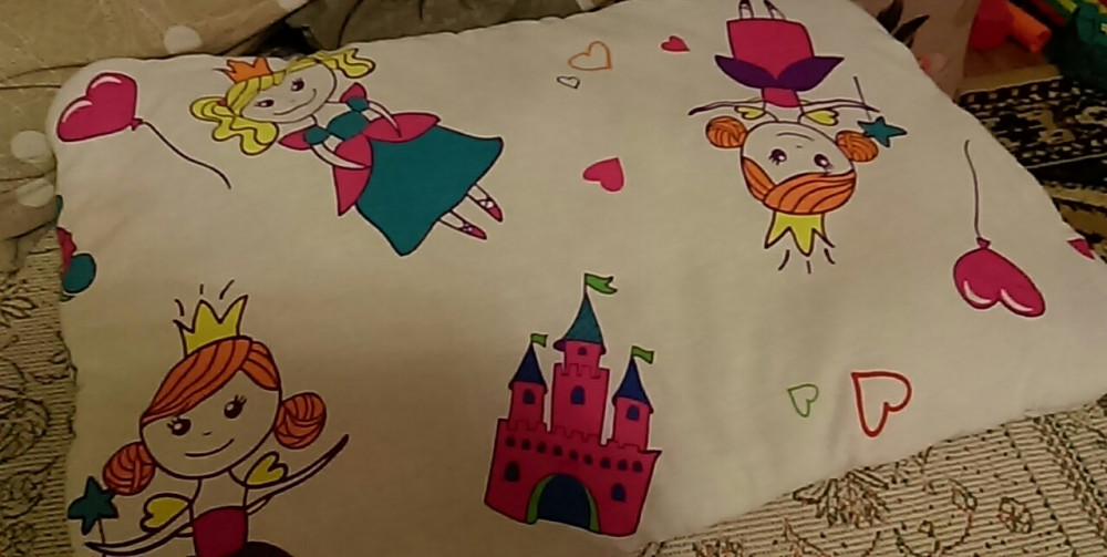 Хорошая подушка. Пришла с яркими принцессами, плоская, воздушная. Ещё не стирала.