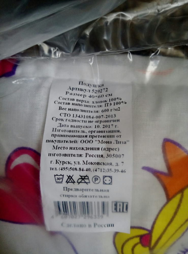Подушка понравилась, не высокая, только пришла с принцессами (у меня сын), под наволочкой слегка виден рисунок,да,ну,и ладно. Главное,после стирки ничего не полиняло и волокно также равномерно распределено. Здесь же покупала сыну одеяло этой же торговой марки и всё также было отлично!!! Спасибо,"Флип".