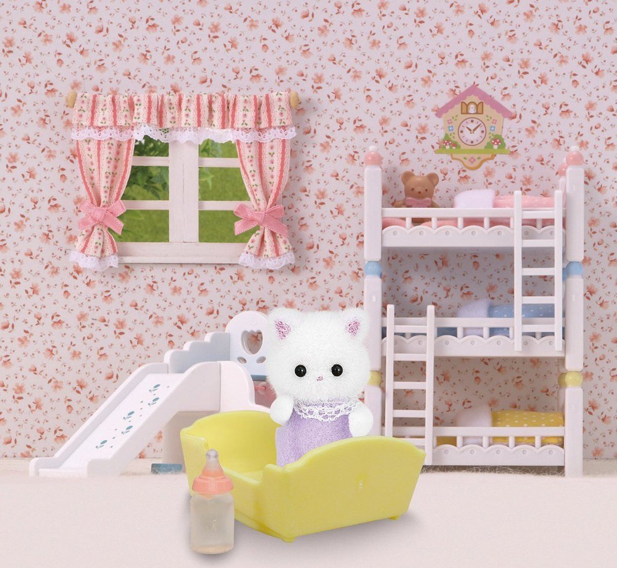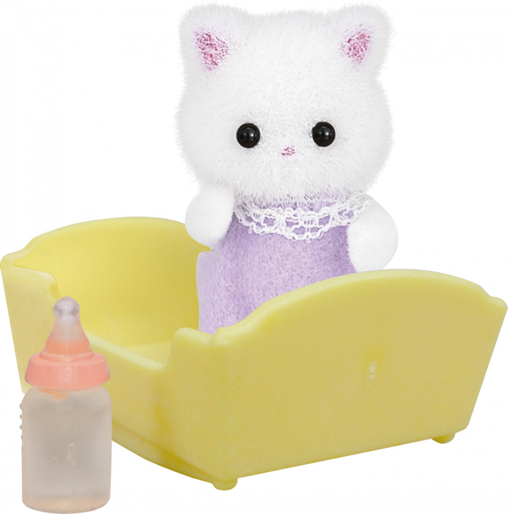 В данный момент этот товар отсутствует в продаже. Возможно, у нас найдется аналогичный или похожий товар здесь. Набор Sylvanian Families «Малыш персидский котёнок» привлечет внимание вашей малышки и не позволит ей скучать. Набор включает в себя фигурку белого котенка, одетого в сиреневый комбинезон, и аксессуары для него: желтую люльку и бутылочку для кормления. Фигурка животного выполнена из пластика и покрыта мягким и приятным на ощупь флоком.