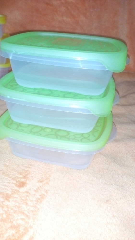 Хорошие контейнеры, ношу в них обед для дочки. Самое главное, нет отталкивающего запаха. Крышечки тоненькие, но это не критично для меня.