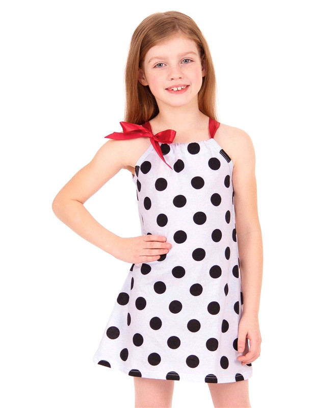 Хотела сарафанчик другой расцветки... но не было размера. Заказали белый с черными кругами. Дочь с нетерпением ждет жаркой погоды, чтобы обновкой похвастаться подругам))))