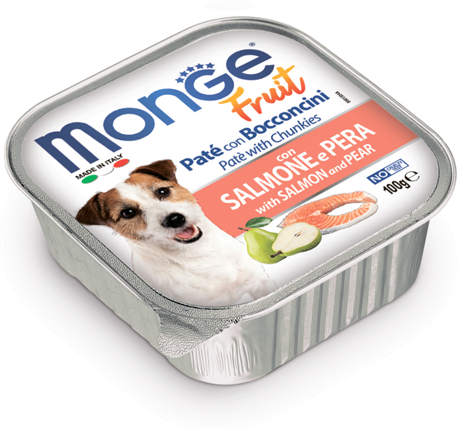 Monge Корм для собак Fruit «Паштет с лососем и грушей»+31 консистенция кусочки мяса аппетит