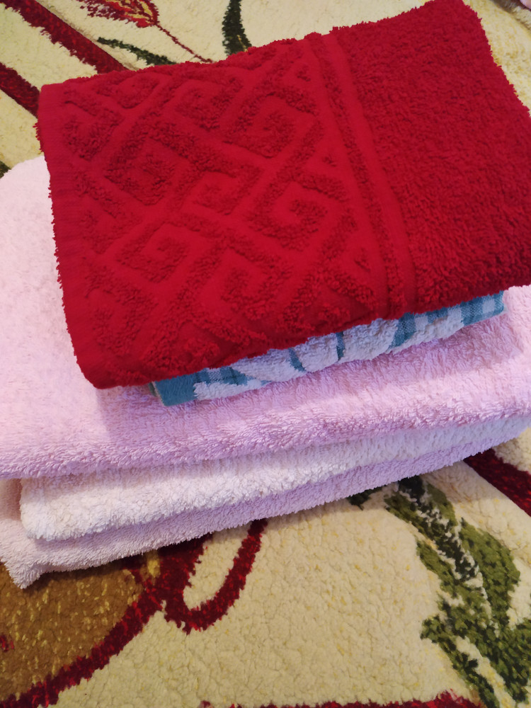 Полотенце понравилось, тонкое, для рук и лица самое то. На фото после второй стирки. На первой фотографии все полотенца были постираны вместе, другие полотенца не покрасило, не линяет, цвет остаётся таким же насыщенным. Закажу ещё