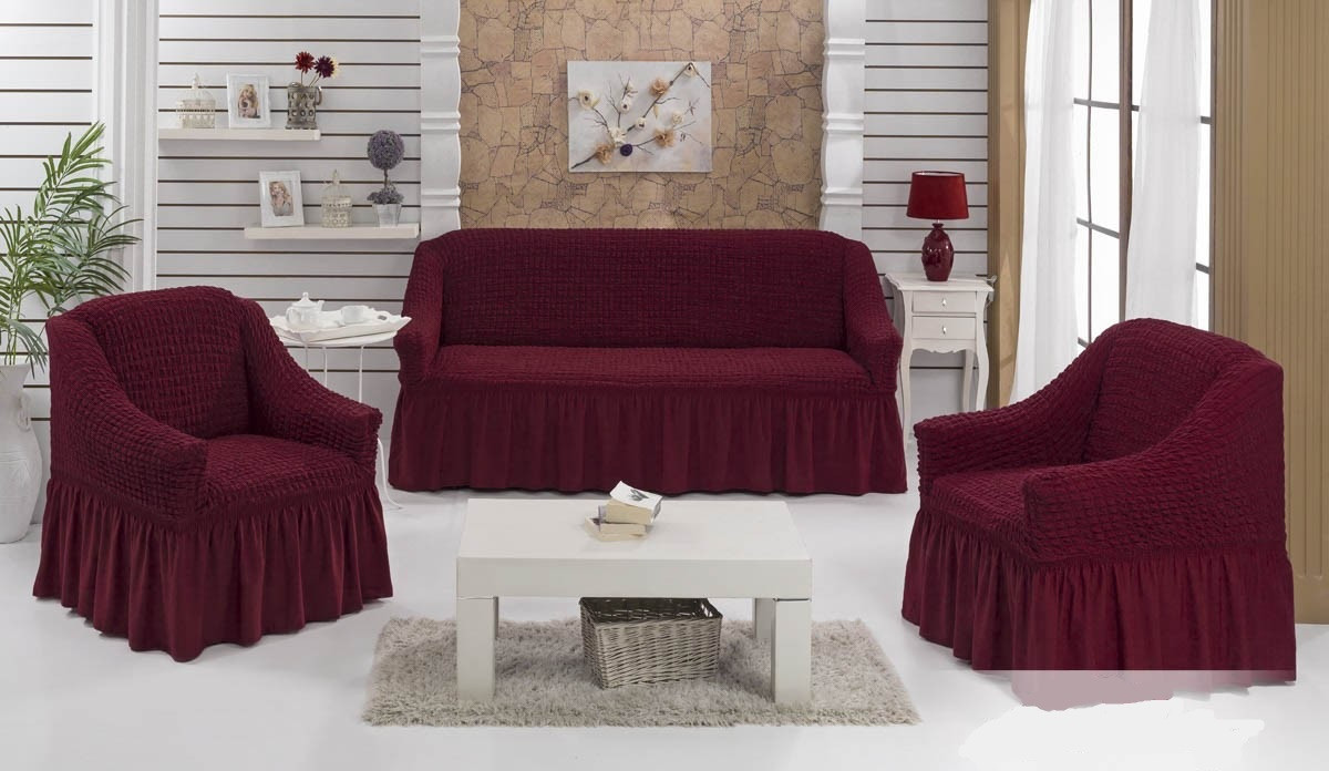 | ESV Home Набор чехлов для 3-х местного дивана и 2-х кресел (бордовый)
