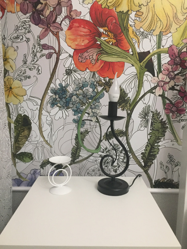Взяла две штуки на всю стену - это возможно, т.к. рисунок отлично состыковывается по краям. Отличное качество. Клеится без проблем. Смотрится красиво и необычно. Хорошо сочетается с различными элементами декора. Очень довольна. Большое спасибо, Flip, что помогаешь воплощать мечты в реальность.