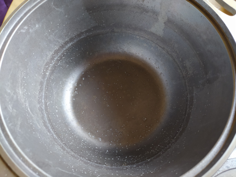 Остались пятна темно серо-белого цвета после первого приготовления, которые не отмываются