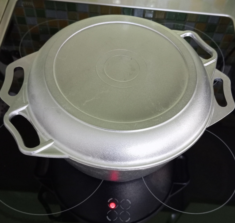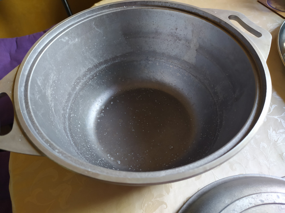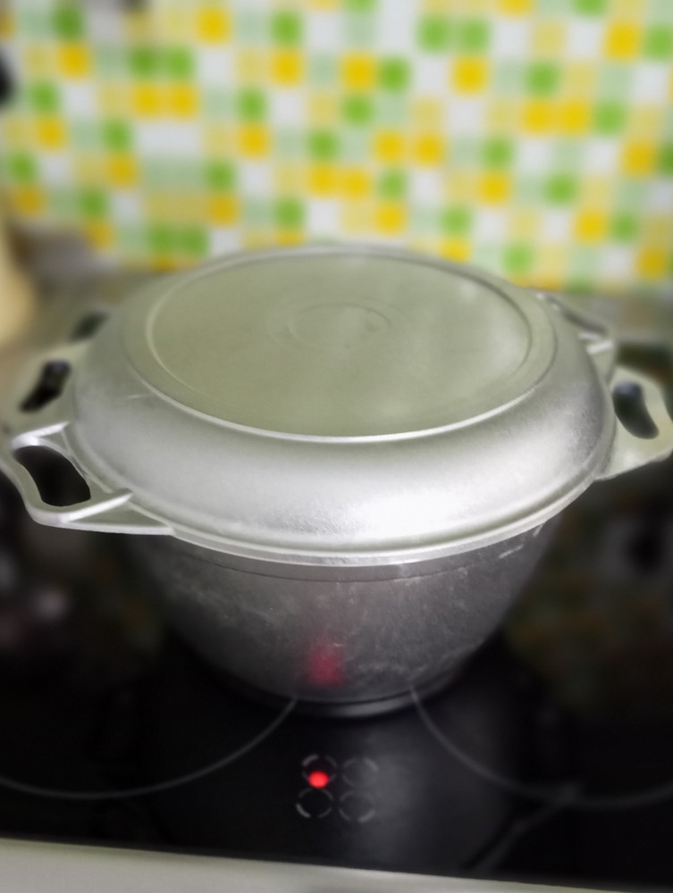 Испробовали в деле казанок, подготовили согласно приложенной инструкции 👍 ничего не прилипало и не пригорало. Казанок хороший. Крышка неудобная)