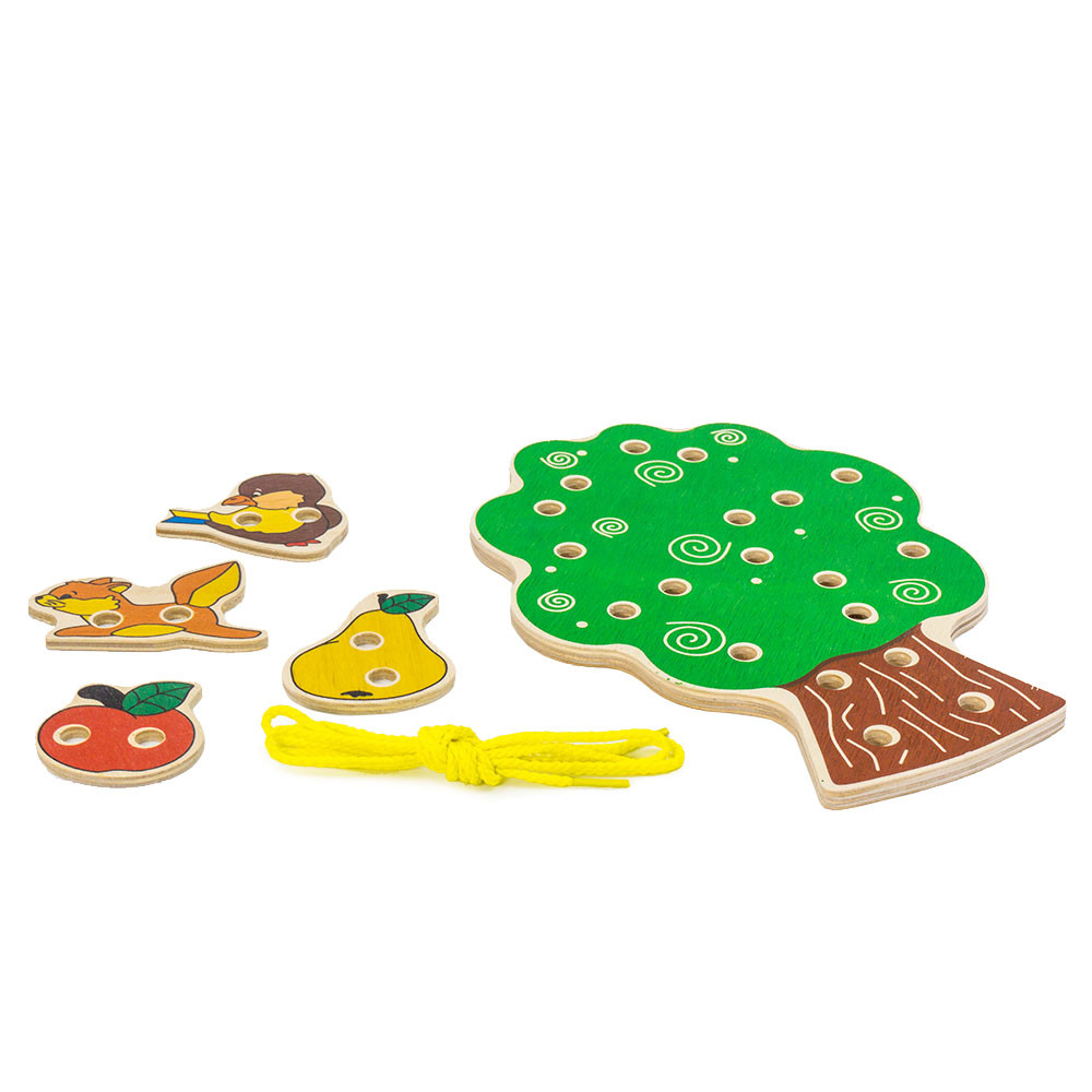 Alatoys Шнуровка «Дерево»В данный момент этот товар отсутствует в продаже. Возможно, у нас найдется аналогичный или похожий товар здесь. Замечательная деревянная шнуровка "Дерево" сделает времяпрепровождение маленьких мальчиков и девочек не только интересным, но и полезным. Данная игрушка интересна тем, что ее можно использовать и как шнуровку, и как рамку-вкладыш, поэтому детки всегда найдут для себя занятие по душе. Ребенок может соединять листочки и фрукты с деревом при помощи шнурочка или находить для каждого элемента соответствующее отверстие в рамке. |