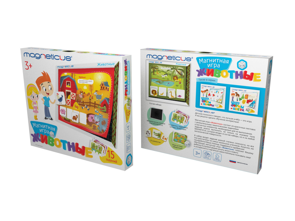 Magneticus Магнитная игра «Животные»В данный момент этот товар отсутствует в продаже. Возможно, у нас найдется аналогичный или похожий товар здесь. Детские психологи говорят, что лучшая учёба — это игра. И мы решили сделать обучение интересным! Магнитная игра «Животные» состоит из красочных листовок с увлекательными тематическими заданиями, а также магнитных элементов, необходимых для их выполнения. Задания можно выполнять не только на игровом поле MAGNETICUS, которое входит в состав набора, но и на любой металлической поверхности. В набор входят задания разной степени сложности, но все они рассчитаны на самых маленьких учеников. Обучающая магнитная игра «Животные» поможет вашему ребёнку в игровой форме узнать много нового и интересного и научиться самостоятельно познавать мир! |