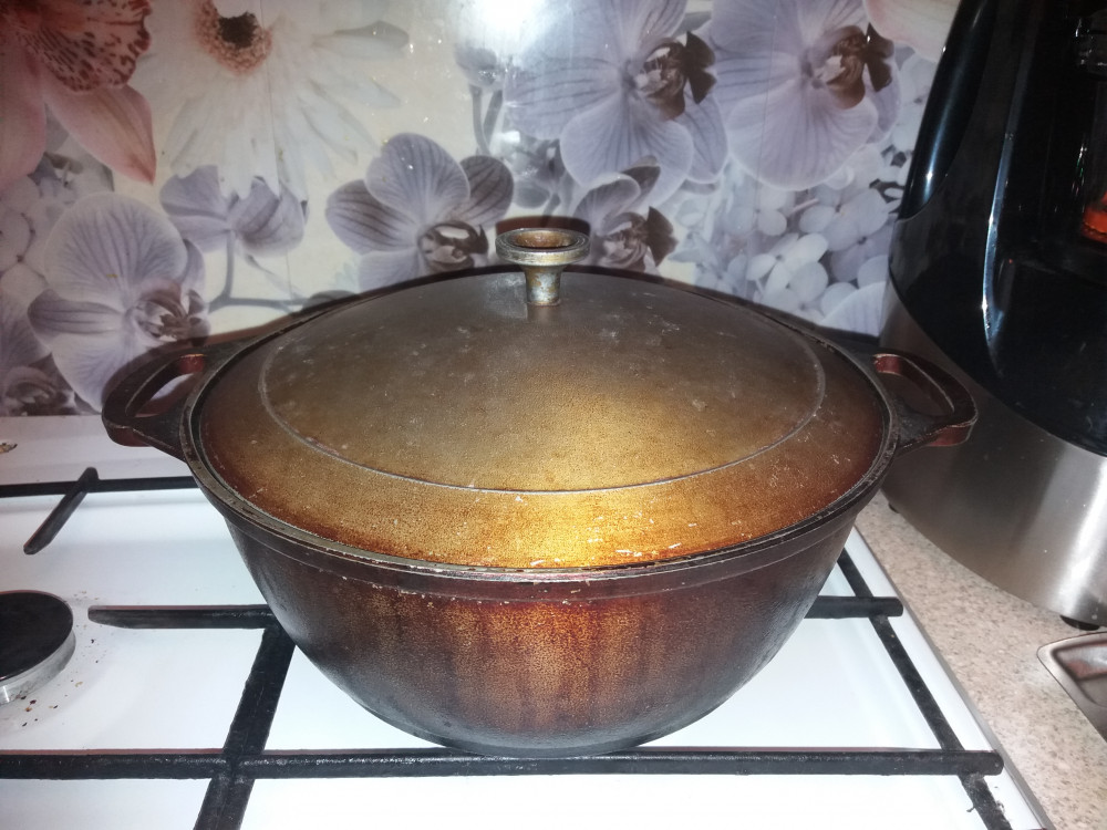 Замечательный казан.Как, впрочем и вся посуда для приготовления пищи бренда Кухмара. Свой казан покупала не на Флипе, он мне от бабушки достался. Но один в один с моим. Пользуюсь им лет 15. За это время он, конечно, потерял свой внешний лоск, но стал только лучше.Этот нагар, который со временем образуется на казанах, счищать не надо.Это своеобразное антипригарное покрытие. Кстати, знаток казанов Сталик Ханшиев для домашнего использования рекомендует именно казаны из литого алюминия. Но, именно, из литого. В сторону штампованных казанов и сотейников даже не смотрите))) Для тех, кто не знает, как отличить штамповку от литой посуды, подскажу. Литая посуда тяжелая, и обязательно имеет на дне кружок.