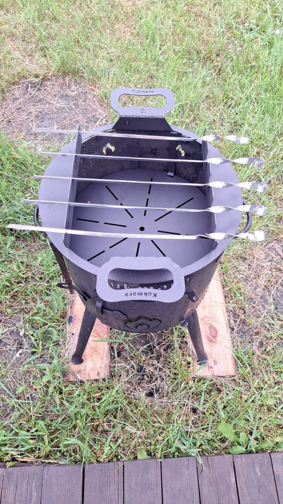 Так как размеры указаны не верно, предлагаю сначала купить Учаг, измерить его, а потом заказывать по диаметру казан, котел, сковороду. Фотки прилагаю. Учаг! действительно красивый дизайн, не такой как на фото.