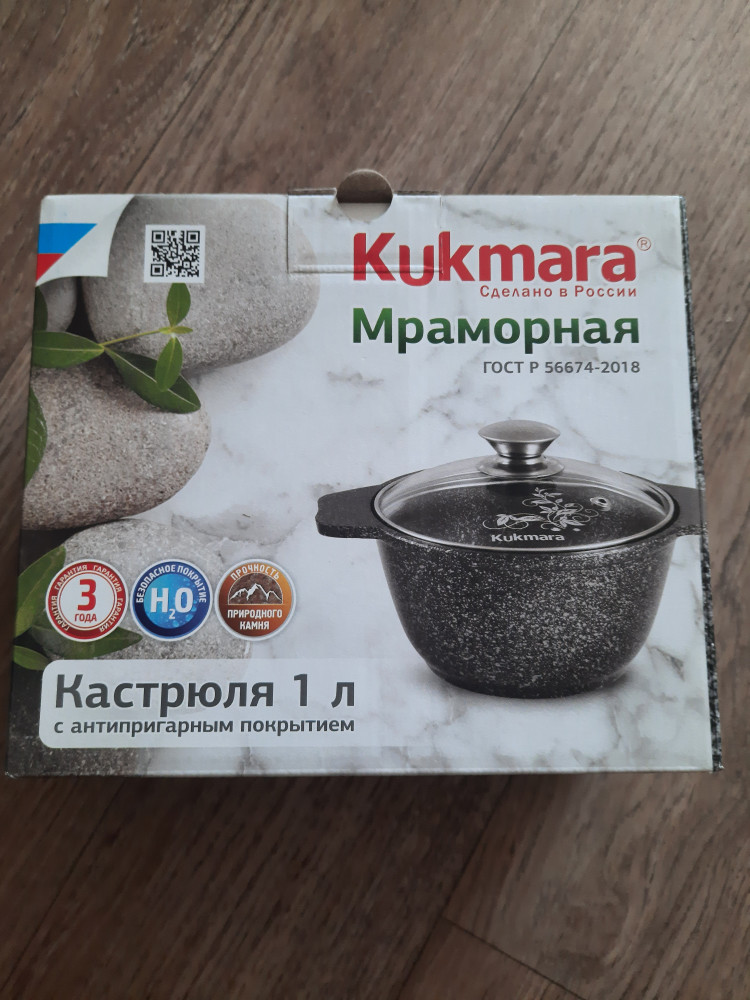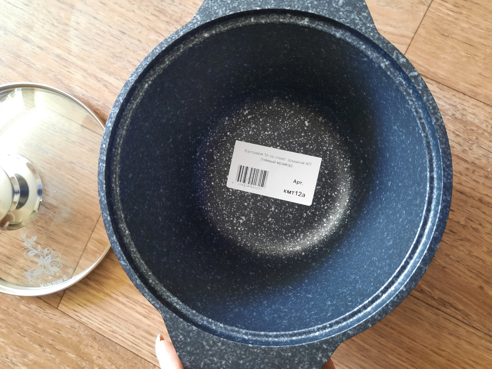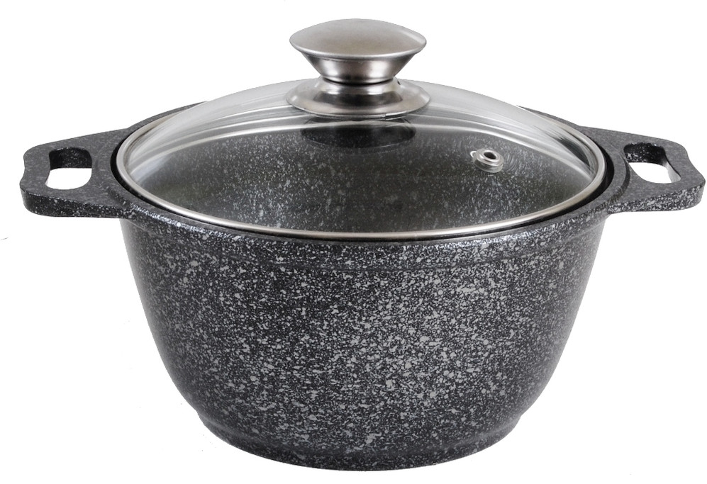 Kukmara Кастрюля литая со стеклянной крышкой «Темный мрамор»-35%
