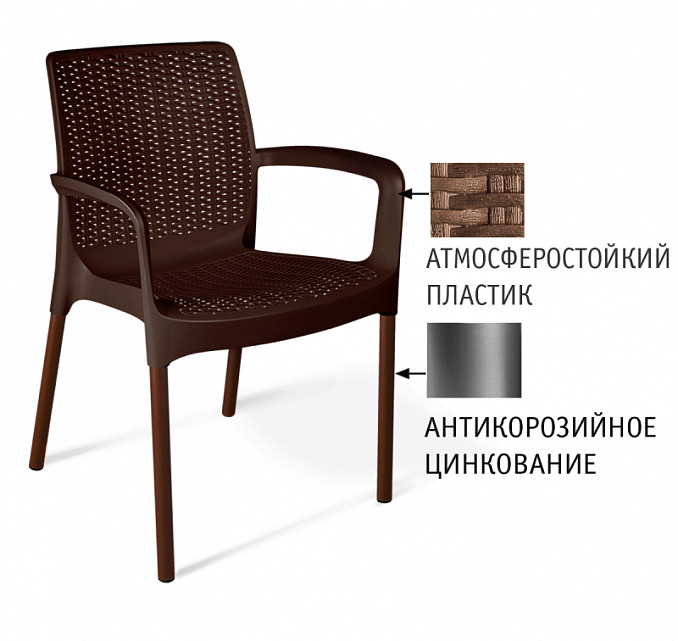 • Стул выполнен из атмосферостойкого пластика и отлично переносит воздействие любых погодных условий;