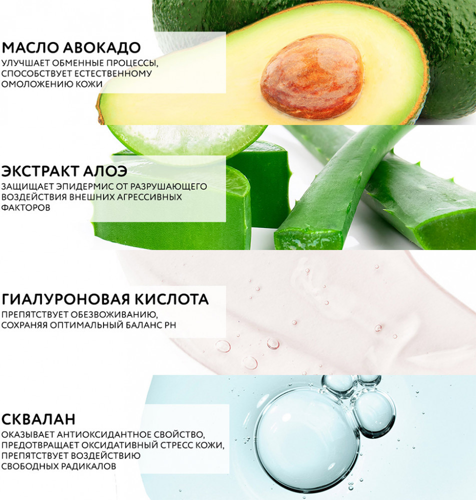 💳 Оплатить за товар можно при получении 🇰🇿 Есть бесплатная доставка по Казахстану от 1 дня 🎁 Копите бонусы с каждой покупки Увлажняющее и питательное средство для ухода за нежной кожей лица. Крем объединяет в себе увлажняющие и питательные свойства, благодаря входящим в состав маслу авокадо, комплексу витаминов, ненасыщенным жирным кислотам и множеству ценных минералов. Ежедневное использование крема на очищенную кожу утром и вечером позволяет замедлить процесс старения кожи, эффективно увлажняет и подтягивает кожу, очищает поры, улучшает кровообращение, запускает активный процесс регенерации клеток кожи и дарит приятный освежающий эффект. |