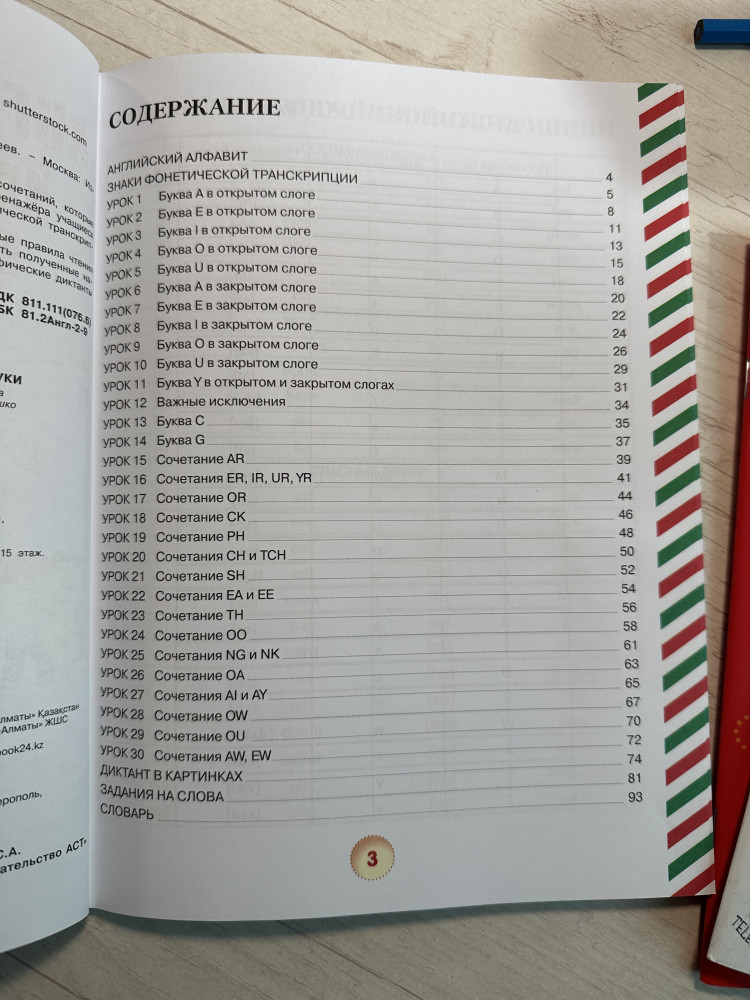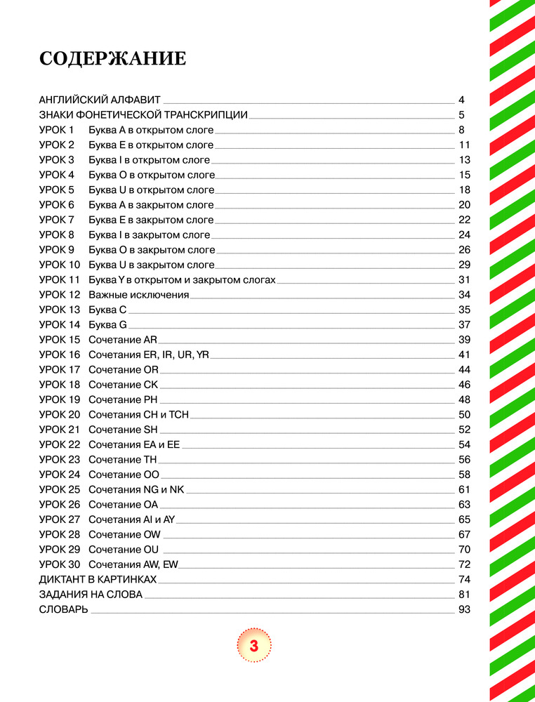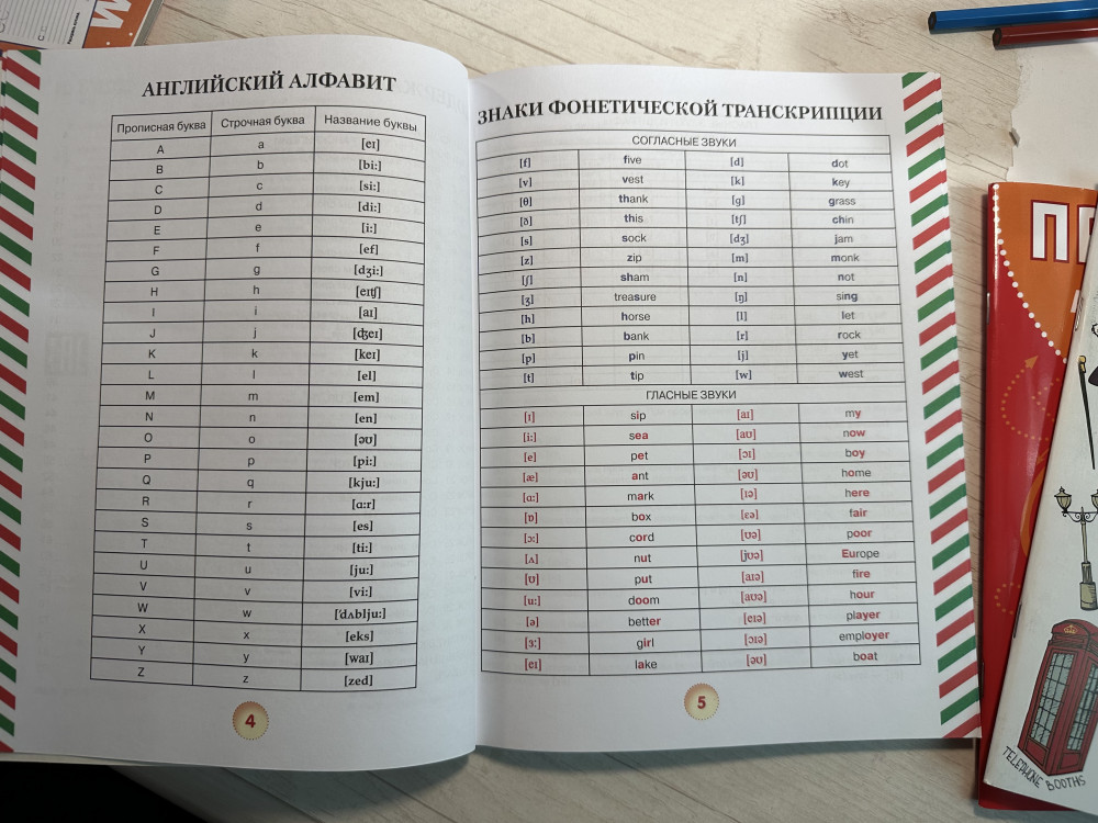 Книга очень красочная с мягкой обложкой. С помощью этой книги ребенок освоит базовую технику чтения и произношения слов. А также , укрепит технику письма алфавита и слов благодаря транскрипции. Спасибо за доставку!