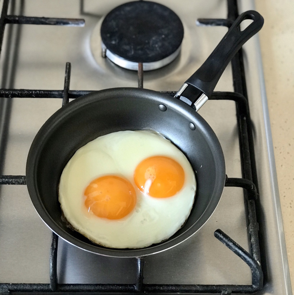 Сковородочка - ЧУДО! Жарит без капли масла. На одно яйцо, ну, максимум на два! Советую тем, кто готовит завтрак на одного человека!