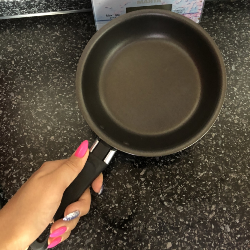 Милашка, но оказалась меньше, чем я думала. На одно яйцо), само дно для жарки всего 11 см, для меня маловато. А так качество хорошее. Не тонкая
