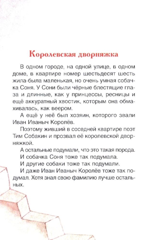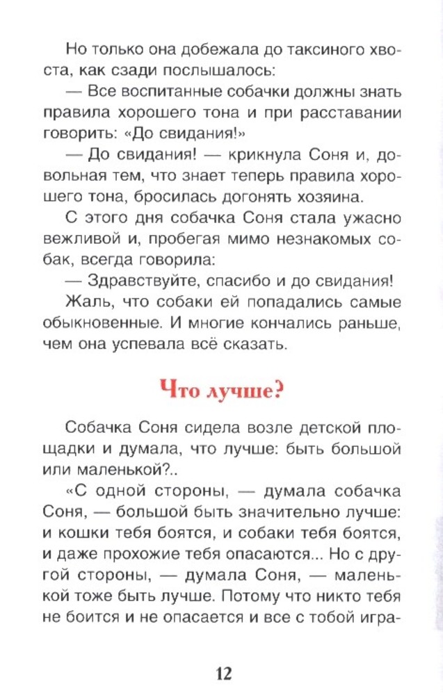 Все видели мультики про собачку Соню, поэтому эта книга не нуждается в рекомендации :) Нам задали читать на лето, рассказы смешные и короткие,читаем с удовольствием. Много картинок, это тоже очень радует. И цена отличная!