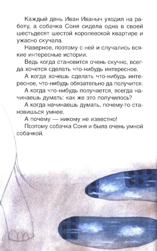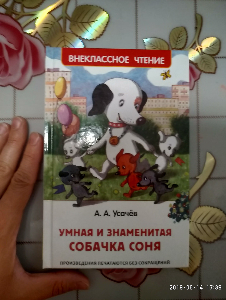 Книга замечательная, Внуку очень понравились истории об умной собачке Соне. Слушал с интересом и сам просил, чтобы ему почитали. качество книги превосходное:листы прочные, рисунки интересные, буквы большие - это очень удобно.Спасибо большое за работу!