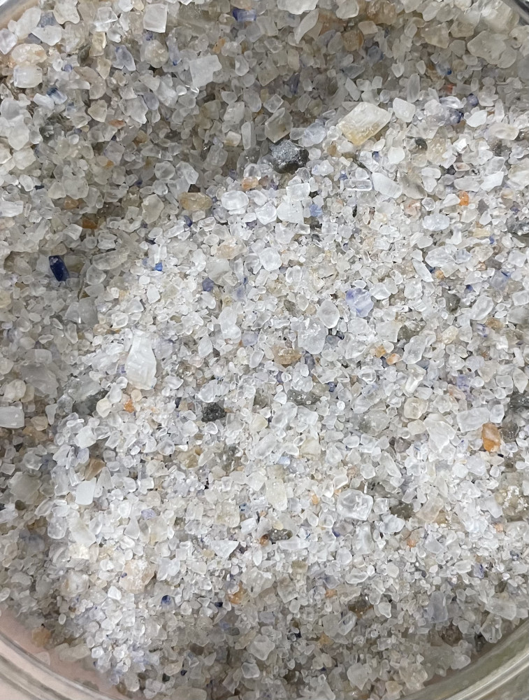 Соль с песком и камушками, прям эффект пляжа), растворять нужно в отдельной ёмкости и потом сливать в ванну без осадка. В остальном нормальная соль, кожу не сушит, очищает и расслабляет.
