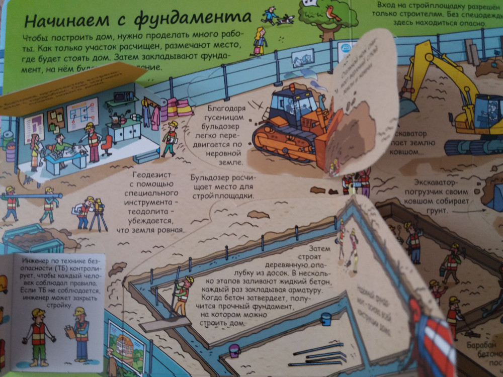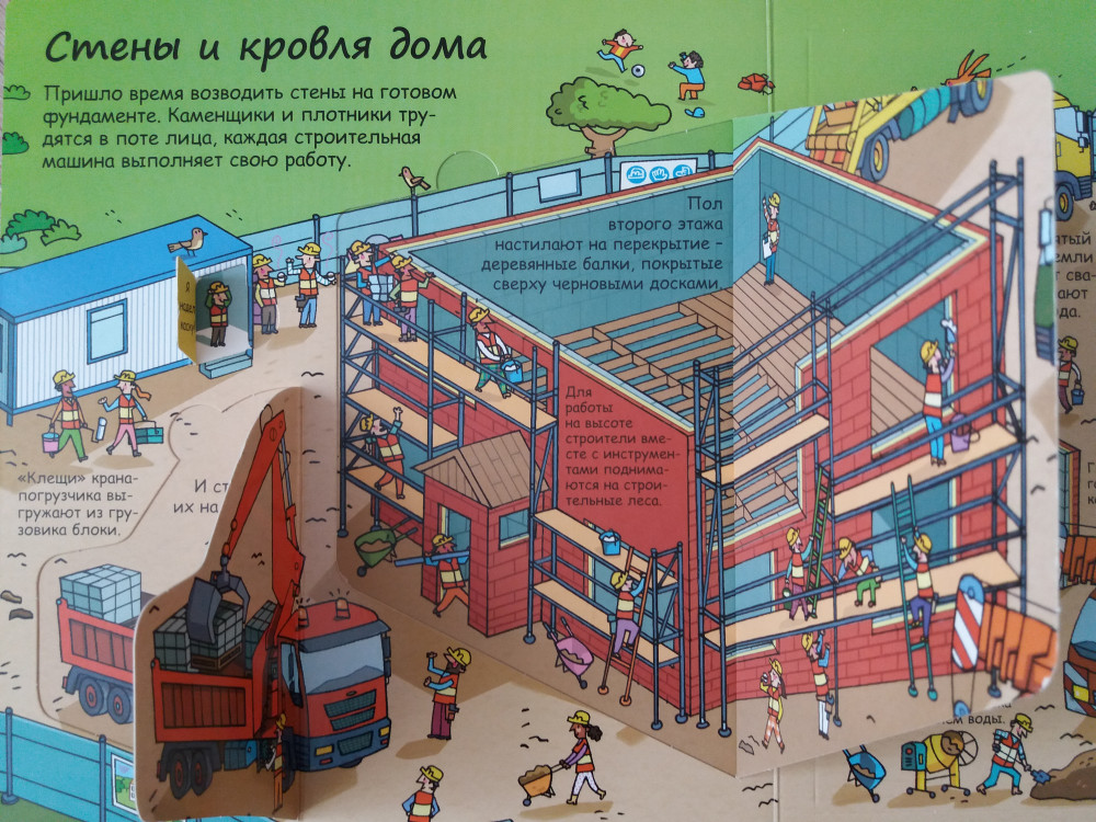 Эта книга расскажет тебе обо всём, что происходит на стройке. Ты сможешь заглянуть внутрь строящегося небоскреба, посмотреть, как выглядят башенный кран и буровая машина для подземных работ, а также познакомиться с другой строительной техникой.