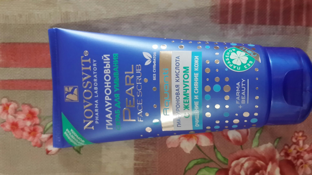 Скраб для умывания гиалуроновый с жемчугом «Aquanti» отличный! Хорошо скрабирует кожу, помогает избавиться от "чёрных точек".Аннотация впоне отвечает действительным качествам этого скраба. Отличный срааб для жирной кожи! Создаёт чувство свежести на коже. И даже как будто "подтягивает" кожу.