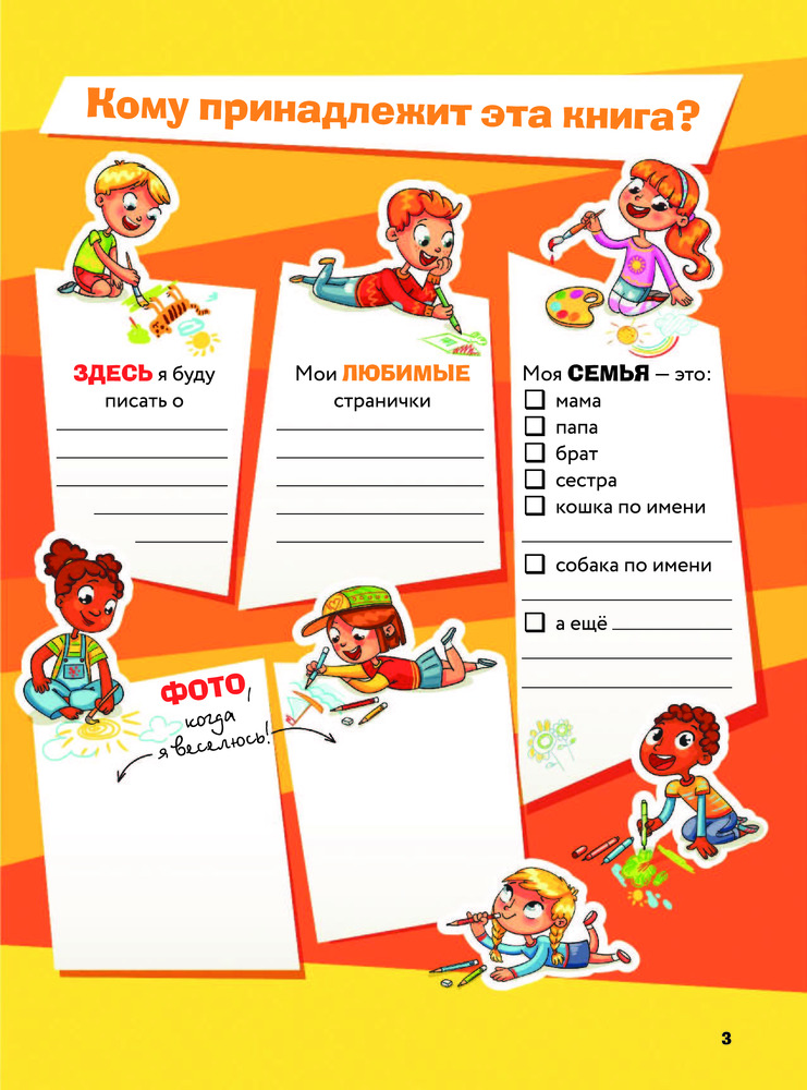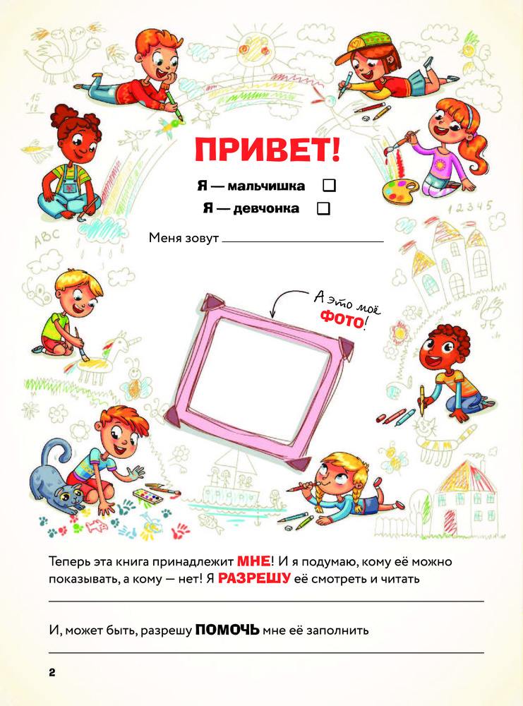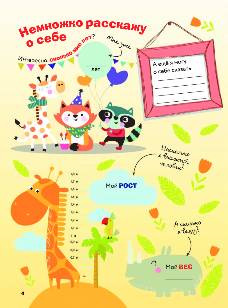 Эта книга создана для того, чтобы стать уникальной. Нужно только вручить ее малышу , и у него появится возможность самому написать свою первую настоящую книгу. Книгу о самом важном в его жизни — о нем самом. О его семье, о мире, который его окружает. Оказывается, это так увлекательно — посчитать количество молочных зубиков в собственном ротике! А как забавно обвести на память отпечаток своей ручки и ножки! В процессе заполнения страниц крохе откроется немало тайн и загадок. Опираясь на подсказки в виде наводящих вопросов, заполняя графы и разрисовывая рамочки, ребенок впервые сможет задуматься: каким я вижу себя? Каким видят меня близкие? Что я знаю о своей семье? О чем я мечтаю и к чему стремлюсь? Украшенные ненавязчивыми забавными иллюстрациями, страницы издания «Моя книга обо мне» помогут малышу в игровой форме научиться рассуждать и отвечать на вопросы, научат быть честным с близкими, друзьями и, главное, с самим собой. Творческие задания разовьют художественную жилку. Книга подарит немало приятных минут в и процессе написания, и после неоднократного перечитывания в далеком будущем.